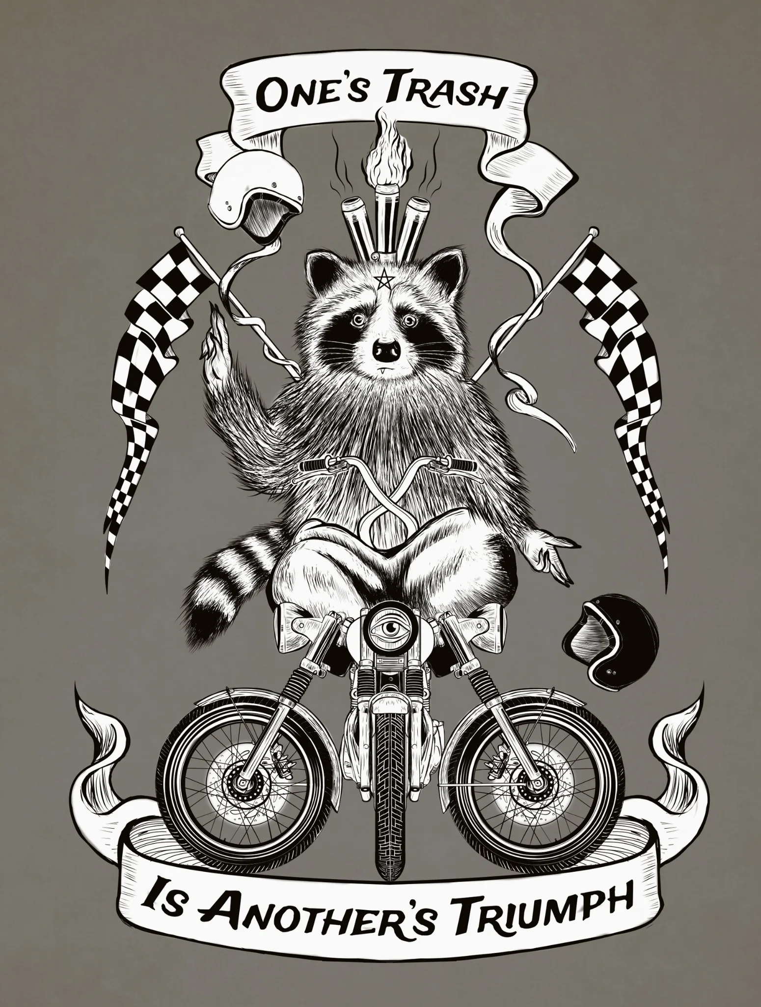 Check out my apparel brand Trash Cat Co. A playful mix of raccoons, motorcycles, and fun trouble. This is a free space for my illustration and apparel design on gear you can wear. Get T-shirts, pins, patches, and stickers that celebrate raccoons, motorcycles and speed.